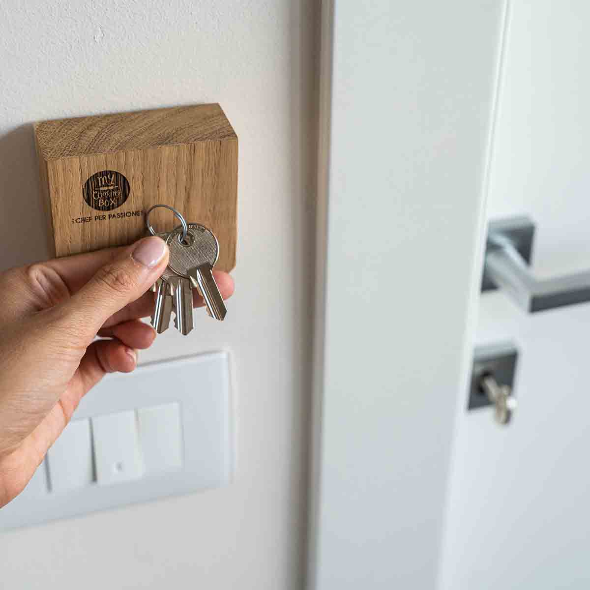 Add a design note to your home with My Cooking Box magnetic keys holder, made of natural oak and with powerful magnets. You can easily mount it on the wall thanks to an adhesive tape (goodbye holes in the walls!).