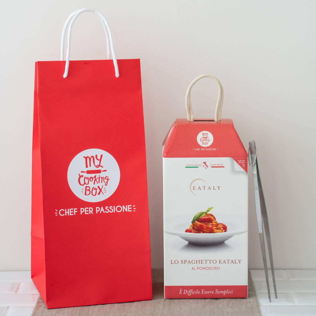 Questo è il regalo perfetto per chi in cucina vorrebbe sentirsi un vero Chef! All'interno della combo troverai uno dei pilastri della cucina italiana, lo spaghetto al pomodoro: nella Box sono presenti tutti gli ingredienti necessari e nelle giuste dosi per preparare questo delizioso piatto. Per dare un tocco finale da vero professionista abbiamo incluso le Pinze da Chef My Cooking Box, l'accessorio da cucina che non può mancare per impiattare in maniera impeccabile. Infine, un'elegante shopper per confezionare al meglio il tuo regalo.