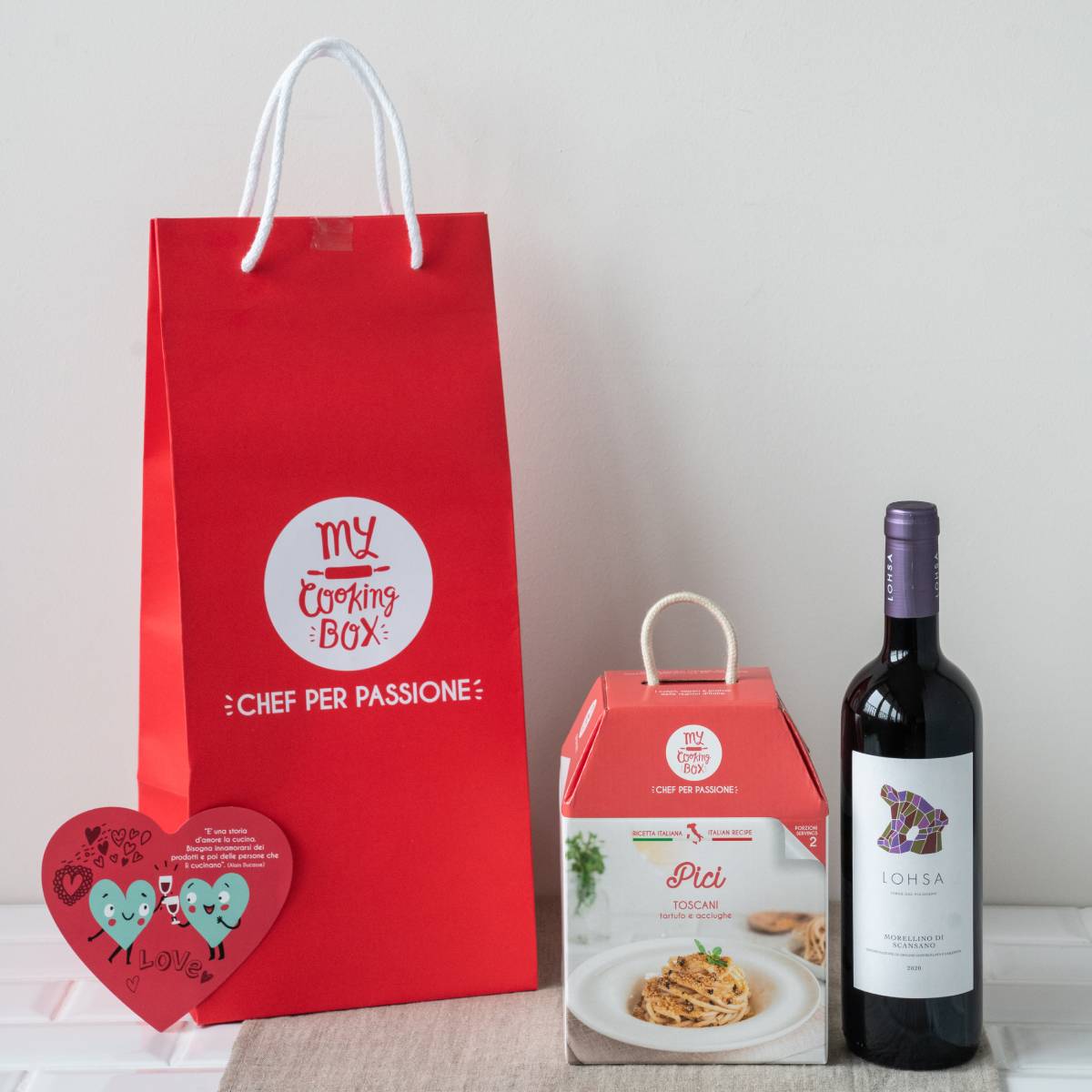 Regala un'esperienza gourmet unica, da vivere e condividere con chi ami: una Box contenente tutti gli ingredienti necessari a preparare deliziosi pici al tartufo abbinati a un profumato Morellino di Scansano DOCG Lohsa. In aggiunta un romantico biglietto per la tua dedica e la nostra shopper.