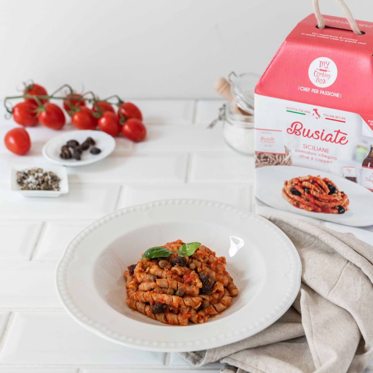 La Box Busiate siciliane con salsa di pomodoro ciliegino è una ricetta siciliana tipica firmata dallo chef Fabio Potenzano ideale per scoprire tutto il gusto della tradizione di questa terra.